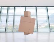 Abstract: Installation bestehend aus zwei ineinander gesteckte Kartonschachteln, die mittels Metallschnüre von der Decke hängen. Das Werk ist an einen Motor angeschlossen, der die innere Schachtel drehen lässt und wird von einer Tonspur begleitet (Klavier, loop).