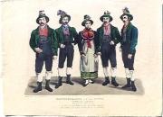 Abstract: Kolorierte Lithographie 'Brothers Rainer and their Sister. Tyrolian Singers. Just arrived in this Country. Natives of Fügen, in the Ziller Valley. Printed a. Pub. by Vowels, 12. May 1827. St. Michael's Alley, Cornhill'. Die vier Rainer Brüder mit ihrer Schwester in Tiroler Tracht.