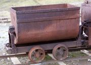 Abstract: Grubenwagen aus Eisen mit zwei Paar Rädern, und einer Wanne auf einem Fahrgestell.Die Eisenteile sind vernietet. An den jeweilen Enden hat der Wagen einen Anhänger und eine Querleiste als Poller.