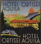 Abstract: "Hotel Aquila Ortisei" Prospekt mit Abbildungen, bestehend aus 4 Seiten, Fotos schwarz-weiß. Stammt aus den 1930er Jahren.