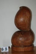 Abstract: Scultura in legno intagliato: figura astratta composta da due forme arrotondate e irregolari su una base.