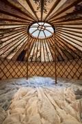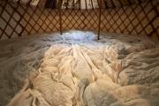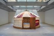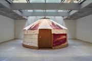 Incantesimo, sentiero (performance) e installazione in dimensioni variabili composta da: - 1 Yurta (tinta naturalmente dall’artista stesso con foglie, radici, piante, e cortecce provenienti dalla Val Sugana e Val Gardena. Alcune delle piante utilizzate: felce, artemisia, rovo, rumex, edera, larice, salice piangente, celidonia, erba del pastore, fiori di pruno, nandina, reseda, robia, cipolla, campeggio, pino, abete, artemisia, geranium, erba rubens. Nella Yurta sono compresi i teli, le corde, i legni della struttura, la porta e il pavimento in legno); - 3 kimono e 3 gonne (cotone bio, tinti naturalmente dall’artista stesso con foglie, radici, piante, e cortecce provenienti dalla Val Sugana e Val Gardena. Alcune delle piante utilizzate: felce, artemisia, rovo, rumex, edera, larice, salice piangente, celidonia, erba del pastore, fiori di pruno, nandina, reseda, robia, cipolla, campeggio, pino, abete, artemisia, geranium, erba rubens); - 1 coperta di lino preparata appositamente per la Yurta, riempita di fieno d’alta montagna al momento dell’esposizione; - 1 video della camminata. Long take con voice off dell’artista; - 1 testo poetico per le guide che accompagnano il visitatore lungo il sentiero (performance); - 1 protocollo per la camminata lungo il sentiero tracciato in Val Gardena (performance); - Chiavi per la porta della yurta; - 1 maniglia scolpita in legno di larice a forma di fiore di Ghost Orchid (Epipogium aphyllum). Yurta e abiti kimono sono ideati e realizzati da Alex Cecchetti. Concept, testo e direzione artistica di Alex Cecchetti. Opera realizzata grazie al finanziamento dell'Italian Council Ed. X (2021) / Realized thanks to the support of Italian Council Ed. X (2021).