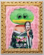 Abstract: Testa d'anatra, busto femminile, vestito asiatico, pelliccia rosa, caratteri grafici e codici figurativi coreani. Collage che unisce elementi culturali diversi. Realtà e immaginazione si mescolano dando vita a uno spazio culturale e identitario locale globalizzato, nel quale il singolo individuo deve trovare una sua nuova collocazione. Soraperra riflette sul rapporto tra la cultura globalizzata e la cultura ladina. L’identità necessita di un continuo rinnovamento tramite ricombinazione.