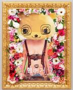 Abstract: Testa d'orsachiotto, busto femminile, "Lederhose", fiori, caratteri grafici e codici figurativi coreani. Collage che unisce elementi culturali diversi. Realtà e immaginazione si mescolano dando vita a uno spazio culturale e identitario locale globalizzato, nel quale il singolo individuo deve trovare una sua nuova collocazione. Soraperra riflette sul rapporto tra la cultura globalizzata e la cultura ladina. L’identità necessita di un continuo rinnovamento tramite ricombinazione.