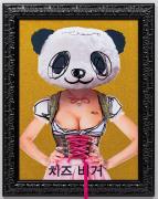 Abstract: Testa di panda, busto femminile, costume tirolese femminile, caratteri grafici e codici figurativi coreani. Collage che unisce elementi culturali diversi. Realtà e immaginazione si mescolano dando vita a uno spazio culturale e identitario locale globalizzato, nel quale il singolo individuo deve trovare una sua nuova collocazione. Soraperra riflette sul rapporto tra la cultura globalizzata e la cultura ladina. L’identità necessita di un continuo rinnovamento tramite ricombinazione.