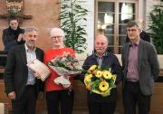 Abstract: Meran - Solidaritätspreis 2019: Rodolfo Zanon und Johanna Hofer prämiert. Im Bild Bürgermeister Paul Rösch (von links), Johanna Hofer, Rodolfo Zanon und Sozialstadtrat Stefan Frötscher