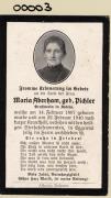 Abstract: Sterbebild von Maria Aberham geb. Pichler, Graßnerin in Aldein Geb. am 14.02.1887, gest. am 22.02.1940 in Eggental mit Foto