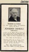 Abstract: Sterbebild von Johann Dipauli, Soldererbauer Geb. am 16.01.1871 in Aldein, gest. am 22.12.1954 mit Foto