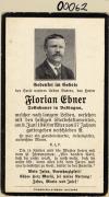 Abstract: Sterbebild von Florian Ebner, Tollnbauer in Valdagno Gest. am 09.06.1940 im Alter von 57 Jahren mit Foto