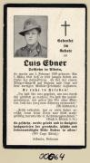 Abstract: Sterbebild von Luis Ebner, Tollsohn in Aldein Geb. am 03.02.1920, gest. am 01.03.1941bei Militärangriff auf Valona mit Foto