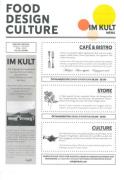 Abstract: Carta del menù; formato giornale relativa al Bistrot e Concept Store IM KULT di Marlengo. L'edificio, ex fabbrica di sapone, gestita dalla fam. imprend. Ortner-Kikinger fino agli inizi degli anni '70 è stato costruito negli anni 20. L'inaugurazione è avvenuta nel 2018.