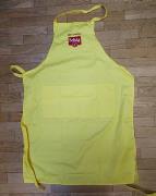 Abstract: 1 Schürze, gelb, Baumwolle / Polyester, mit rotem aufgenähtem Werbespruch "Best in Gluten Free - Schär" (Dr. Schär Ag stellt glutenfreie Nahrungsmittel her) und 2 Taschen auf der Vorderseite. Hersteller: US Basic.