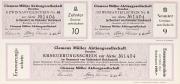 Abstract: titolo azionario n. 1404 dell'impresa Clemens Müller A.G. per 100 Reichsmark datato Dresden, 16.09.1935 con foglio cedola (frammento) stampa: Giesecke & Devrient