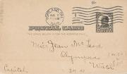 Abstract: cartolina postale con illustrazione; tecnica mista, monocroma retro: foglio con illustrazione (mani e macchina da scrivere) incollato vicino a testo in rima (scrittura a mano, china) fronte: indirizzato a Miss McLeod, Olympia; francobollo prestampato U.S. Postage One Cent; timbro postale Portland/Aug 2 1909