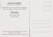 Abstract: cartolina illustrata; fotografia, policroma fronte: veduta interno di un ufficio privato con macchina da scrivere retro con descrizione: invito al vernissage "Anne Weber. un livre, une exposition" 15.05.1995