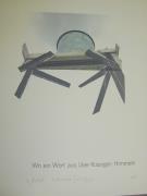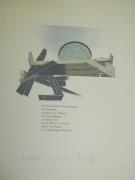 Abstract: Triptychon Drei Blätter mit einem Gedicht von Sepp Mall und einem Foto mit Holzschnitten überlagert von Ulrich Egger sig und dat u.m. Nummer 4/7