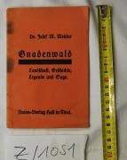 Abstract: Verlag: Union-Verlag Druck: keine Angabe Auflage: keine Angabe Auf dem Deckel "Dr. Josef M. Metzler: Gnadenwald. Landschaft, Geschichte, Legende und Sage. Union-Verlag Hall in Tirol." Schwarz/rot/weiß gedruckt, gotische Buchstaben. Deckel aus dünnem roten Karton, schwarz bedruckt; Vorderseite wie oben beschrieben.