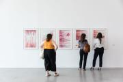 - Una mela su due tra quelle raccolte in Italia e una ogni dieci in Europa proviene dall’Alto Adige. Una delle varietà di mele più popolari viene commercializzata con il marchio “Pink Lady”, che garantisce lo stesso standard di qualità a livello mondiale: ha sempre lo stesso gusto, lo stesso colore e le stesse dimensioni. L’installazione “Pink Lady” offre una riflessione su questo ramo dell’agricoltura descrivendolo come campo d’azione globalizzato, tradizionale e fortemente regolamentato, ma anche romanticizzato e spettacolarizzato: il video mostra un magnifico carro allegorico con una corona composta da oltre 600 chilogrammi di mele; contemporaneamente vengono registrati testi sulle conseguenze dei sistemi di classificazione globale. Una cartolina storica ingrandita attira l’attenzione sul fiorito paese delle mele come fosse una pubblicità, mentre due lucenti sculture in acciaio, che riproducono misuratori di mele sovradimensionati, sembrano voler osservare da vicino l’intera scena. (Marion Piffer Damiani, in „Arbeiten. Lavori in corso II”, Bolzano 2020, p. 128)