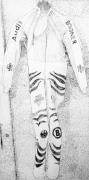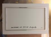 Installazione in 4 parti. È composta da una cartolina sovradimensionata, stampata a due lati, da un video in 3 lingue (tedesco, italiano e inglese) dalla durata di 7 minuti con un monitor nonché da due calibri sovradimensionati per mele, uno in piedi e uno steso. Edizione 3/3 + 1 AP.