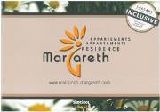 Abstract: Opuscolo pubblicitario a colori: "Residence Margareth" a Campo Tures; riporta numerose immagini degli appartamenti vacanza. Motivo grafico di copertina: margherita (parziale) gialla stilizzata con il gambo a forma di G a completamento del nome del residence suddetto.