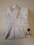 Abstract: 1 Bademantel, weiß, Größe M, Frottee, Monogramm "A & L" aufgenäht vorne links. Wird vom Wellnessresort Amonti & Lunaris in Steinhaus im Ahrntal den Hotelgästen zur Verfügung gestellt.