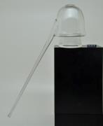 Abstract: Alambik, Alambique, Alembicus, Destillierhelm, Brennhut, in der Alchemie auch Caput Mauri, Capitellum oder Galea genannt aus farblosem Glas. Aufgesetzter Glasposten am Helm (als Griff?). Schnabel in Gesamtlänge.