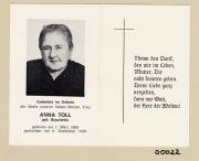 Abstract: Sterbebild von Anna Toll, geb. Boschetto Geb. am 07.03.1898, gest. am 06.12.1978 mit Foto