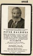 Abstract: Sterbebild von Peter Daldoss, Besitzer des Gasthauses "zum Hirschen" in Radein und am Jochgrimm Gest. am 09.11.1944 im 72. Lebensjahr mit Foto Sterbebild von Elisabeth Daldoss Geb. am 18.02.1903 in Radein, gest. am 21.12.1944 im Jesuheim in Girlan ohne Foto