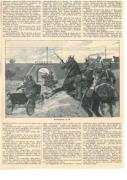 Abstract: 1 Grafik, sw, Zug - Reisende im Speisewaggon von C. H. Kuechler (Signatur unten rechts) aus einer Zeitschrift von 1902. Auf der Rückseite befindet sich eine grafische Darstellung eines Automobils, das an Soldaten zu Pferd vorbei fährt und die Tiere scheuen lässt. Die Grafik trägt den Titel "Manöver-Episode", signiert mit "O. Gerlach".