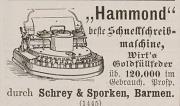 Abstract: foglio di giornale (Illustrirte Zeitung) con annuncio pubblicitario per macchina da scrivere Hammond monocromo - tre esemplari