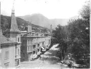 Abstract: Meran : Sparkassenstraße mit Baumgartnerhaus und Sparkassengebäude ( rechts )