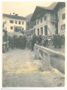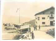 Abstract: Fotografia in bianco e nero con bordini bianchi. Passo Giovo. Sul Passo Giovo in occasione della cerimonia d'apertura del k.k. Post - gite/viaggi in auto Merano - Giovo - Vipiteno. A dx dell'immagine, il "Jaufenhaus" - Rifugio Giovo.