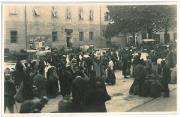 Abstract: Fotografia in bianco e nero con bordini bianchi. Merano. Piazza Duomo. K.u.k. soldati prima del servizio funebre del defunto imperatore Franz Josef I.