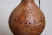Dengelamboss und Dengelhammer bilden eine Werkzeugeinheit. Der aus einem eisernen Vierkantstab gefertigte Dengelamboss zeigt einen ausgeschmiedeten, breiteren und im Querschnitt entsprechend schmäleren Kopf mit abgefaster Oberkante. In etwa der Mitte des Amboss ist der Vierkantstab gelocht und durch die Perforierung eine Rosette aus starken, spiralig zusammengerollten Eisenbändern geführt, das untere Ende des Stabes läuft spitz aus. Am Amboss sind verschiedene Punzverzierungen und Markierungen angebracht. Auf einer Flachseite des Kopfes rahmt eine perlschnurartige Punzierung die Buchstabe bzw. Initialen „A I“, daran schließt ein senkrechter Perlschnurstab an, auf den ein „X“ folgt, das mit der selben Punze gefertigt wurde. Auf der zweiten Flachseite findet sich dieselbe Perlschnurrahmung, die ein „X“ aus zwei gekreuzten Perlschnurstäben mit hornartigen Fortsätzen umgibt. Am Vierkantstab sind zweimal die Initialen „J R“ eingestanzt, einmal senkrecht, das zweite Mal auf der gegenüberliegenden Stabseite waagrecht, wobei nur mehr die unteren Buchstabenteile zu sehen sind. Eine symbolische Bedeutung der Punzverzierung aus Perlschnurstäben ist anzunehmen. Der Dengelhammer besitzt einen leicht gebogenen Kopf mit geraden Schlagflächen, der für diese Art Werkzeug charakteristisch ist. Die Perforierung am unteren Ende des Holzstiels wurde erst im Zuge der Adaptierung als Ausstellungsobjekt angebracht. Der Dengelamboss wird mitunter auch als Dengelstock bezeichnet. Verwendung: Bis zur Entwicklung der Mähmaschinen wurden die Heuwiesen mit der Sense in Handarbeit gemäht. Dengelhammer und Dengelamboss dienten während des Mähens zum Ausklopfen der Scharten am Sensenblatt. Die Arbeit wurde direkt am Feld ausgeführt, wobei der Dengelamboss bis zur Rosette, die gewissermaßen als Widerlager dient, in die Erde gesteckt wurde, damit der Amboss während des Dengelns nicht im Boden versinkt. Alternativ konnte der Dengelamboss auch in einen Schemel oder Baumstumpf geschlagen werden. Beim Dengeln liegt das Sichelblatt auf der Oberkante des Ambosskopfes auf und wird mit dem Dengelhammer geklopft. Nur durch Dengeln und Wetzen erreichte das Sensenblatt die gewünschte Schärfe.