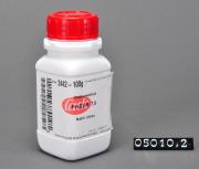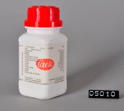 Abstract: Weißer Kunststoffbehälter aus Polyethylen (PE), hergestellt durch Extrusionsblasen, mit rotem Schraubverschluss und Sicherheitsring aus PP. Original verschlossen. Etikett der Firma Caesar & Loretz, D-40721 Hilden (Caelo). Mit Analysenzertifikat der Firma Caelo. Freigabedatum 17.08.2011. Verwendbar bis Ende: 02/2014. Seitlich teilweis abgerissenes Strichcodeetikett der Stadtapotheke Peer.