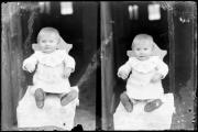 Abstract: Collezione di 92 lastre di vetro da Ciasa La Crepa del proprietario Complojer di Longega - Marebbe - Due foto affiancate con la stessa immagine: un*a bambino*a è seduto*a su una sedia in legno.
