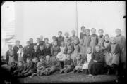 Abstract: Collezione di 92 lastre di vetro da Ciasa La Crepa del proprietario Complojer di Longega - Marebbe - Fotografia di gruppo con bambini in abiti quotidiani, probabilmente una fotografia scolastica.