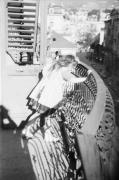 Abstract: Maria Christina Ghibaudi auf dem Wohnungsbalkon an der Freiheitsstraße