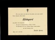 Abstract: Todesanzeige der Hildegard Ahrens am 4. Juli 1900. Breiter schwarzer Trauerrahmen.