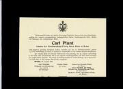 Abstract: Todesanzeige des Carl Plant am 25. August 1901 in Meran. Breiter schwarzer Trauerrahmen.