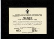 Abstract: Todesanzeige des Alois Schrott am 29. März 1902 in Meran. Breiter schwarzer Trauerrahmen.