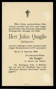 Abstract: Gefaltete Todesanzeige des Julius Quaglio am 3. Dezember 1899, Meran. Schmaler schwarzer Trauerrahmen.
