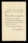 Abstract: Sterbebild des Wilhelm Ritter von Kriegshaber, ausgestellt von seiner Gattin Clara von Kriegshaber in Meran am 21. Mai 1899. Schwarzer Trauerrahmen.