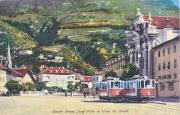 Abstract: Grieser Platz, Bozen. Mit im Bild Straßenbahn (Tram) Garnitur