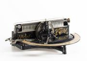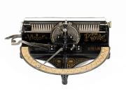 Abstract: macchina da scrivere Victor Typewriter caratteristiche: puntatore, margherita portacaratteri, battitura frontale, lettere maiuscole/minuscole, tampone inchiostrato costruttore: Arthur Irving Jacobs particolarità: prima macchina da scrivere con elemento portacaratteri a margherita - numero di serie 1897