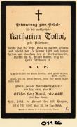 Abstract: Sterbebild von Katharina Tolloi geb. Pederanz Geb. am 26.09.1834 in Kaltern, gest. am 15.01.1889 in Kaltern ohne Foto
