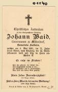 Abstract: Sterbebild von Johann Waid, Bauersmann zu Mitterdorf (Kaltern) Gest. am 06.05.1891 im Alter von 71 Jahren ohne Foto