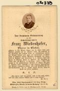 Abstract: Sterbebild von Franz Wiedenhofer, Pfarrer in Pension (Steinegg) Geb. am 18.09.1822 in Bozen, gest. am 02.10.1891 in Bozen mit Foto