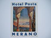 Abstract: Etichetta adesiva per valigie: 'Hotel Posta, Merano'.