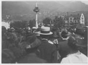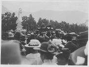 Abstract: Fotografia in bianco e nero con bordini bianchi. Merano - Autonomia - Comizio pr. il piazzale della stazione. "La tribuna del sud - parlano - il dr v. Zallinger ed il dr. Luchner". Sul retro-immagine, una nota scritta a mano.